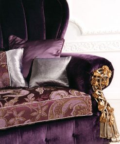 Трёхместный диван, декорирован резными элементами. Наполнение — полиуретан. Возможны другие варианты обивки и отделки. В дополнение можно заказать декоративные подушки