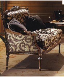 3-х местный диван, подлокотники с мягкими накладками. Наполнение — полиуретан. Декорирован резьбой. Ручная работа. Возможны различные варианты отделки (красное дерево, махагон, охра, декапе и т.д.) и обивки.