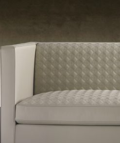 Диван в мягкой обивке. Подушки сиденья и спинки декорированы стёганой прошивкой. Наполнение: полиуретан, пух. Основание выполнено из металла. Возможны другие варианты обивки