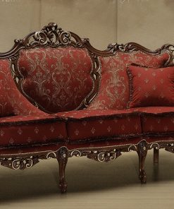 Диван 3-х местный, декорированный резьбой. Наполнение — полиуретан. Возможны другие варианты отделки и обивки, в том числе выполнение в ткани клиента