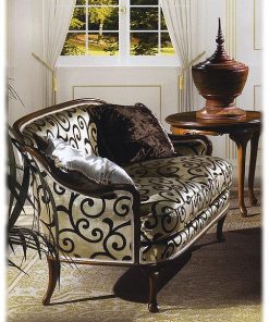 3-х местный диван, жесткие подлокотники. Наполнение — полиуретан. Ручная работа. Возможны различные варианты отделки (красное дерево, махагон, охра, декапе и т.д.) и обивки.