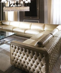 Пример композиции углового модульного дивана. Боковины обиты в технике капитоне. Возможны другие варианты отделки и обивки