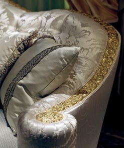 Трехместный диван с бахромой. Обит в технике капитоне. Декорирован резьбой. Возможны другие варианты отделки и обивки, в том числе в ткани клиента.