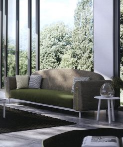 Трёхместный диван в мягкой обивке. Подлокотники декорированы пуговицами. Основание выполнено из металла. Возможны другие варианты отделки и обивки