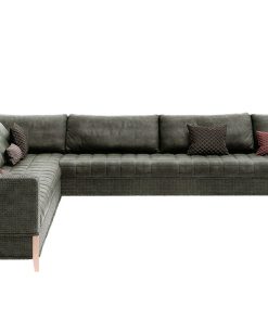 Угловой диван в мягкой обивке. Сиденье декорировано стёганой прошивкой. Ножки выполнены из металла. Наполнение: пенополиуретан. Возможны другие варианты отделки и обивки. Угол дивана можно расположить справа или слева. Декоративные подушки заказываются дополнительно
