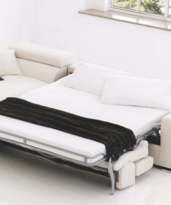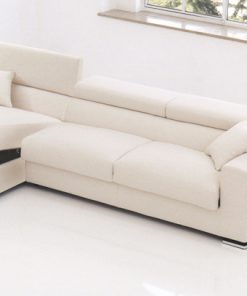 Пример композиции модульного дивана с механизмом подъема подголовника. Включает в себя двухместный терминальный элемент с механизмом кровати и кушетку. Наполнение: спинка — пенополиуретан, сиденья — пух. Ножки выполнены из металла. Возможен вариант кушетки с контейнером. Предусмотрена версия с кроватью. Возможны другие варианты обивки.