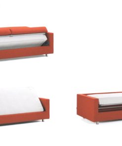 Диван-кровать в мягкой обивке. Наполнение: спинка — пух, сиденье — пенополиуретан. Ножки выполнены из металла. Версия без кровати не предусмотрена. Возможны другие варианты обивки
