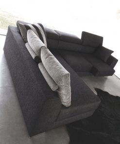 Пример композиции модульного дивана с механизмом сиденья и подголовника. Включает в себя два двухместных терминальных элемента и один угловой элемент. Наполнение: спинка — пенополиуретан, сиденья — пенополиуретан и пружинные блоки. Ножки могут быть выполнены из металла или дерева. Возможны другие варианты обивки