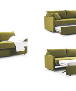 Диван-кровать в мягкой обивке. Наполнение: спинка и подлокотники — гусиный пух, сиденье — матрас со стёганым чехлом. Ножки выполнены из металла. Версия без кровати не предусмотрена. Возможны другие варианты обивки