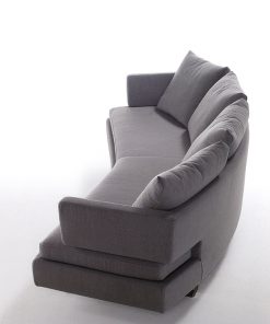 Диван в мягкой обивке с закруглённой спинкой и металлическим основанием. Наполнение: гусиный пух, пенополиуретан. Возможен вариант дивана с одним подлокотником. Возможны другие варианты обивки
