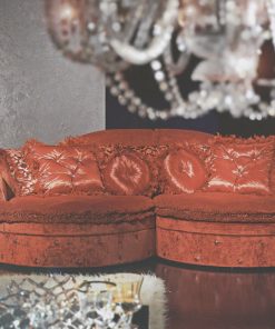 Пример композиции модульного дивана. Включает в себя две полукруглые кушетки, обитые в технике капитоне. Возможны другие варианты обивки