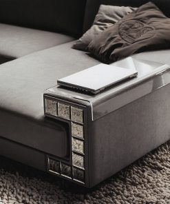 Модульный диван с металлическими ножками и зеркальными вставками. Возможны другие варианты обивки, в том числе в коже и ткани клиента.