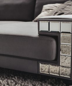 Трехместный диван с металлическими ножками и зеркальными вставками. Возможны другие варианты обивки, в том числе в коже и ткани клиента.