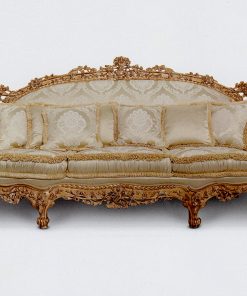 Трехместный диван. Декорирован резьбой. Возможны другие варианты отделки и обивки.