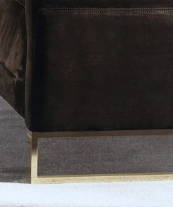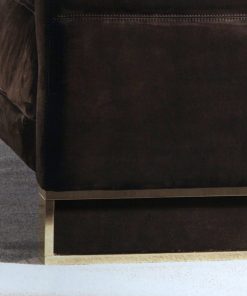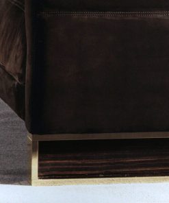 Диван в мягкой обивке с металлическим основанием. Наполнение: гусиный пух, полиуретан. Основание декорировано вставкой из глянцевого эбенового дерева. Возможен вариант основания с вставкой из выбранной обивки. Возможны другие варианты отделки и обивки