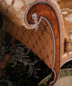 2-х местный диван, декорирован резными элементами ручной работы. Наполнение — полиуретан. Возможны другие варианты отделки и обивки.