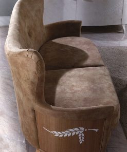 Диван в мягкой обивке с деревянными боковинами, декорированными росписью. Возможны другие варианты отделки и обивки