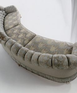 Полукруглый диван. Декорирован резьбой и бахромой. Спинка обита в технике капитоне. Возможны другие варианты отделки и обивки.