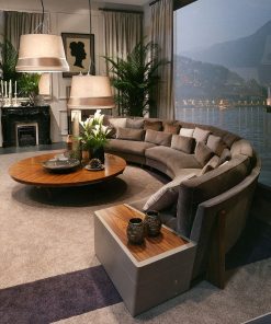 Модульный полукруглый диван. Наполнение — полиуретан. Отделка — палисандр, возможны другие варианты отделки и обивки.