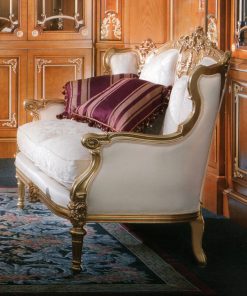 3-х местный диван, декорирован резными элементами ручной работы. Наполнение — полиуретан. Возможны другие варианты отделки и обивки.
