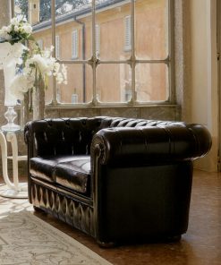 Двухместный диван с деревянными ножками. Обит в технике капитоне. Возможны другие варианты отделки и обивки, в том числе в ткани клиента.Возможен вариант кровать.