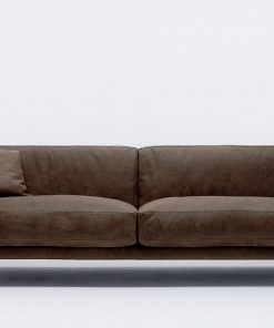 Трехместный диван с металлическими ножками. Возможны другие варианты обивки.