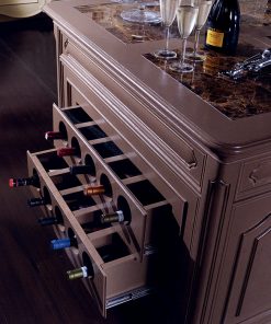Остров с распашными дверцами. Украшен резьбой. Топ со вставками из мрамора. Возможны другие варианты отделки.