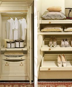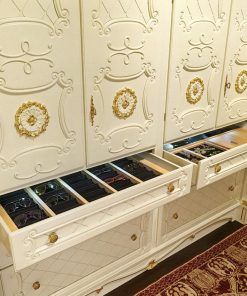 Гардеробная комната, выполняется по проекту заказчика. В дополнение можно выполнить с подсветкой. Декорирована резными элементами ручной работы. Возможны другие варианты отделки.