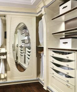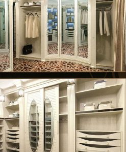 Гардеробная комната, выполняется по проекту заказчика. В дополнение можно выполнить с подсветкой. Декорирована резными элементами ручной работы и палисандровым деревом. Возможны другие варианты отделки.