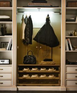 Гардеробная комната, выполняется по проекту заказчика. Дверцы выполнены из стекла. В дополнение можно выполнить с подсветкой. Возможны другие варианты отделки. Размеры композиции: Д.370/532/370 x Ш.58 х В.266