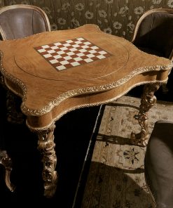 Игральный столик с двусторонней столешницей. Декорирована резьбой. Возможны другие варианты отделки.