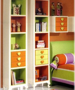 Книжный шкаф с 4-мя нишами и 3-мя выдвижными ящиками, декоративные ручки в виде розочек или сердечек. Возможны другие варианты отделки.