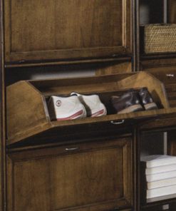Модульный угловой книжный шкаф с откидными и распашными дверцами, выдвижными ящиками и письменным столом. Возможны другие варианты отделки
