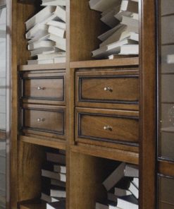 Книжный шкаф с двумя раздвижными стеклянными дверцами и выдвижными ящиками. Возможны другие варианты отделки