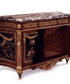 Комод с 2 распашными дверцами и внутренними выдвижными ящиками. Украшен инкрустацией и резьбой. Топ выполнен из мрамора. Возможны другие варианты отделки.