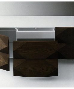 Комод с 2-мя распашными дверцами и одним выдвижным ящиком. Внутри один ящик и стеклянные полки. Структура — ясень. Возможны различные варианты отделки