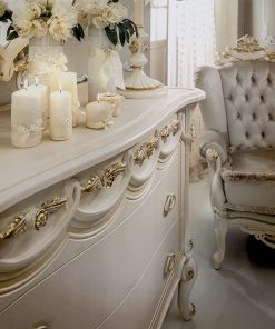 Комод с 3 выдвижными ящиками. Декорирован резьбой. Возможны другие варианты отделки.