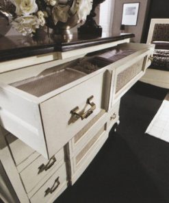 Комод с четырьмя выдвижными ящиками, декорирован плетёнными соломенными вставками. Возможны другие варианты отделки