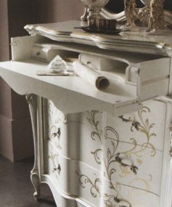 Комод с тремя выдвижными ящиками и откидной дверцей. Декорирован росписью и резьбой. Возможны другие варианты отделки