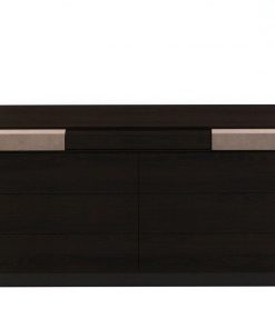 Комод с семью выдвижными ящиками. Боковины обиты кожей. Основание выполнено из металла. Ящики с системой открывания push-pull. Возможны другие варианты отделки и обивки
