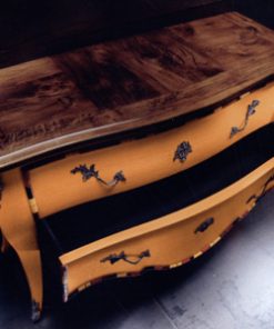 Комод с двумя выдвижными ящиками, топ из ореха с античным эффектом, многоцветная профиль. Возможны другие варианты отделки.
