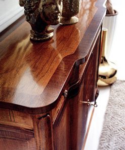 Комод из орехового дерева на изогнутых ножках. Имеет 2 распашные дверцы. Украшен инкрустацией. Возможны другие варианты отделки.