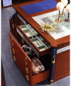 Комод с банкеткой. Также имеется ящик для драгоценностей. Структура — вишня, отделка — махагон