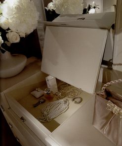 Комод с 5 выдвижными ящиками и 1 откидной дверцей. Обит кожей. Возможны другие варианты обивки.