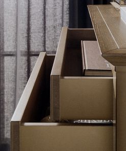 Комод с 6 выдвижными ящиками с системой push pull. Структура — дуб и липа. Декорирован резьбой с цветочной композицией. Возможны другие варианты отделки.