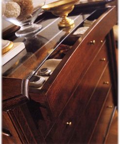Комод с пятью выдвижными ящикам. Столешница выполнена из стекла. Возможны различные варианты отделки.