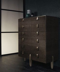 Высокий комод с двенадцатью выдвижными ящиками. Ножки выполнены из металла. Возможны другие варианты отделки