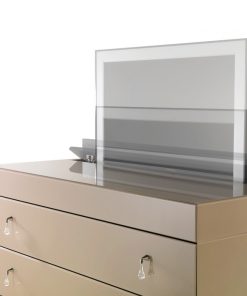 Комод в отделке из крашеного стекла с тремя выдвижными ящиками и четырьмя круглыми ножками. Ящики с системой открывания push-pull. Ножки выполнены вручную из муранского стекла. Возможны другие варианты отделки. Ручки для ящиков заказываются дополнительно. Также дополнительно можно заказать подсветку для ножек или оборудовать комод автоматической выдвижной панелью с телевизором
