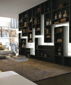Пример композиции модульной стенки. Состоит из потолочных и напольных открытых модулей в отделке из полированного стекла. Возможны другие варианты отделки и другие варианты композиций