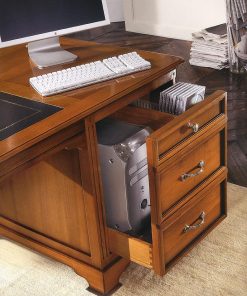 Компьютерный стол с 3-мя ящиками и выдвижной подставкой под системный блок, столешница выполнена с вставкой из кожи. Возможны другие варианты отделки.